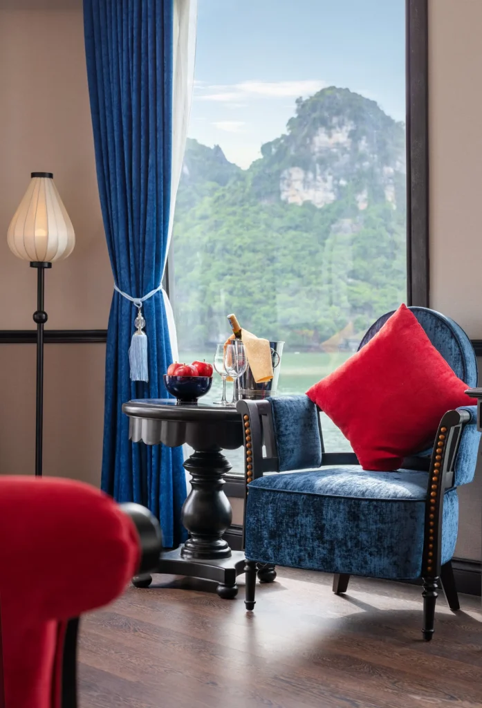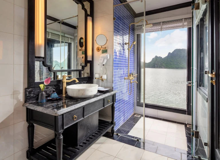 Aurora Cruise Lan Ha Bay offers a refined boutique experience in the serene waters of Lan Ha Bay, a quieter extension of the world-famous Ha Long Bay. Designed for travelers seeking tranquility, elegance, and authenticity, the cruise features only 18 modern cabins, ensuring a peaceful and exclusive atmosphere throughout the journey. Each cabin is thoughtfully designed with large panoramic windows, allowing guests to fully immerse themselves in the breathtaking scenery of limestone karsts rising from emerald waters.